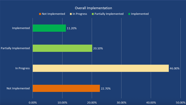 Um levantamento do Draghi Observatory, ligado ao European Policy Innovation Council, revela que um ano depois da apresentação do relatório apenas 11,2% das 383 recomendações foram plenamente implementadas. Quase metade ainda está em andamento e mais de um quinto nem foi iniciado.