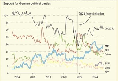 O que aconteceu na Alemanha não é um caso isolado. O avanço da direita tem sido uma tendência eleitoral na Europa nos últimos anos. Na Holanda, Geert Wilders e seu Partido para a Liberdade (PVV), de extrema-direita, venceram as eleições em 2023, enquanto na Itália, Giorgia Meloni consolidou seu governo sob a bandeira do conservadorismo nacionalista. Na Áustria, o Partido da Liberdade (FPÖ), de extrema-direita, conseguiu 28% dos votos nas eleições legislativas de setembro de 2024 lidera as pesquisas e pode governar pela primeira vez. Já na França, Marine Le Pen se mantém como uma das candidatas favoritas para a eleição presidencial de 2027, desafiando as forças políticas de centro e centro-direita que apoiaram Emmanuel Macron em duas eleições nacionais.